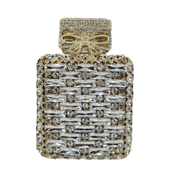 - Dazzle at any event with our Crystal Perfume Bottle Shaped Clutch! This versatile and chic design is sure to turn heads. Perfect for any occasion, this clutch is both practical and stylish. Cheers to looking fabulous!