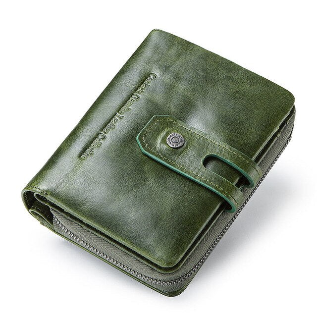 Top Grain Glossy Genuine Leather Wallet Purse With Clasp
