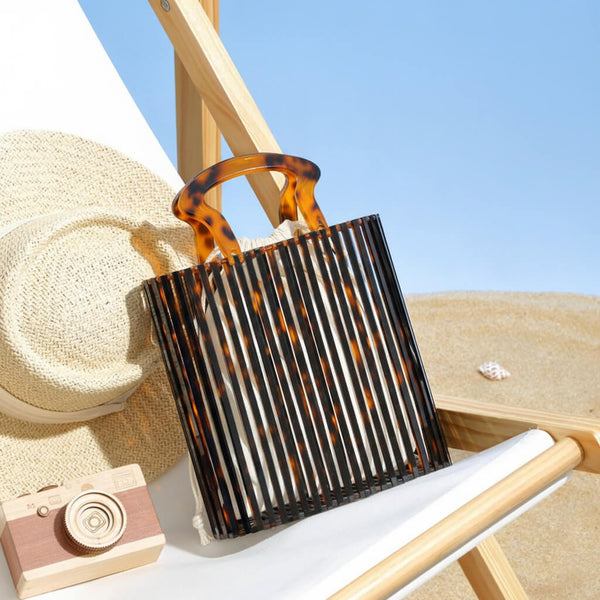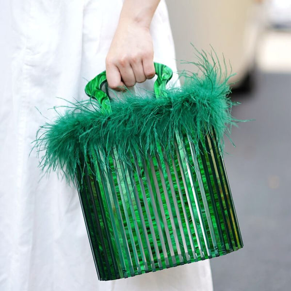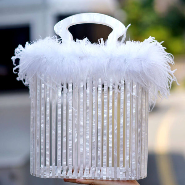 Sac seau en acrylique avec poignée supérieure et pochette creuse Sac seau en acrylique avec poignée supérieure et pochette creuse
